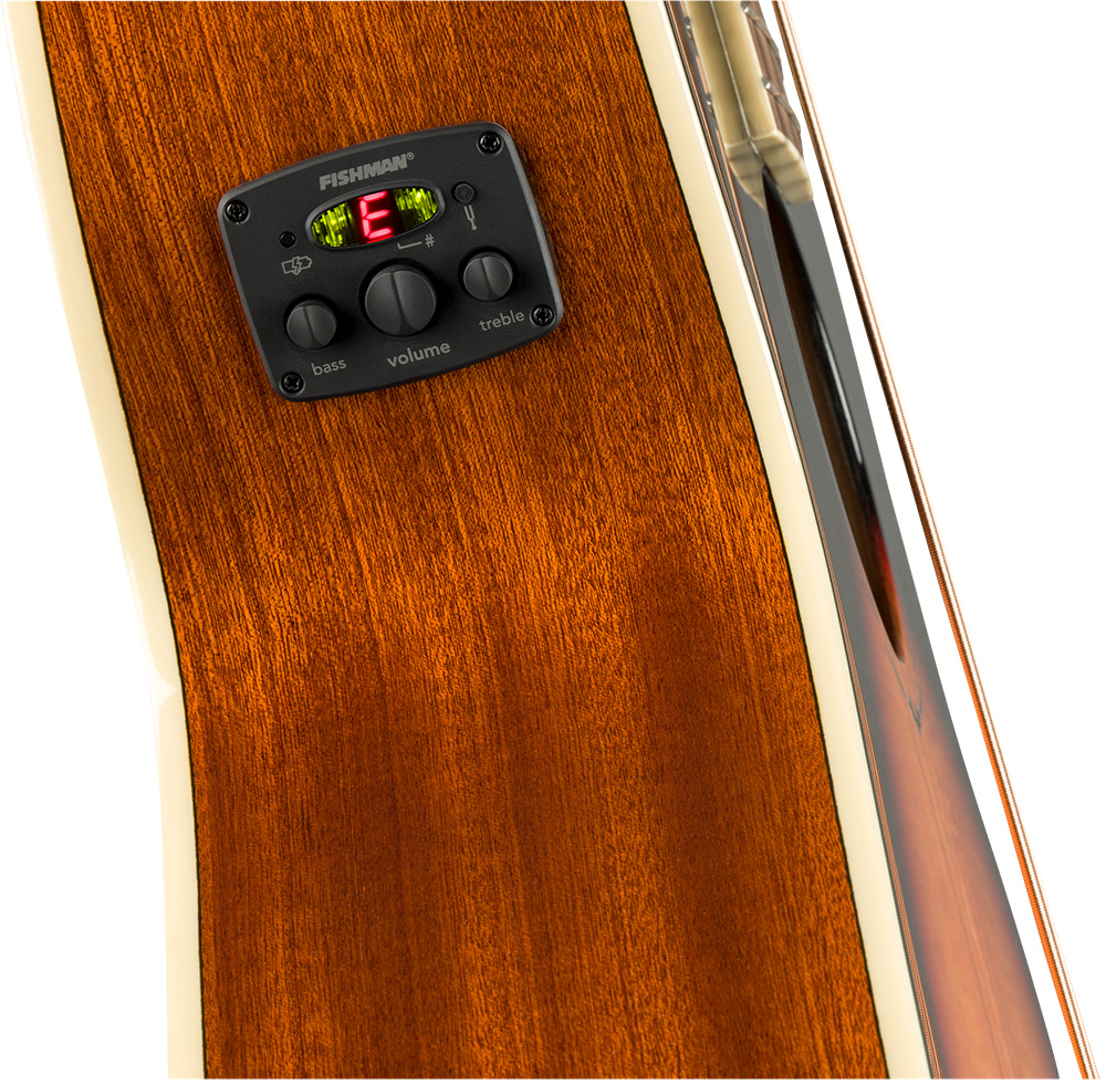 No es solo otro bajo bonito, el inspirador y sorprendentemente versátil FA-450CE hace que sea fácil llevar el tono de bajo Fender asesino y sentirlo donde quiera que vaya. Para actuaciones amplificadas. El sistema de preamplificación Fishman® integrado ofrece un sonido nítido junto con controles de volumen, graves y agudos para dar forma precisa a su tono. La lujosa tapa de arce flameado mejora la articulación, brindando un ataque nítido a la rica y cálida voz del fondo y los aros de caoba. El mástil en forma de «C moderna» tiene un diapasón de 9,5″ de radio que funciona bien para casi cualquier estilo de interpretación. Encuadernación en color crema, un clavijero moderno de 2×2, un puente vikingo clásico y una roseta ‘keystone’ completan los detalles, añadiendo un toque elegante al atractivo visual del instrumento.
