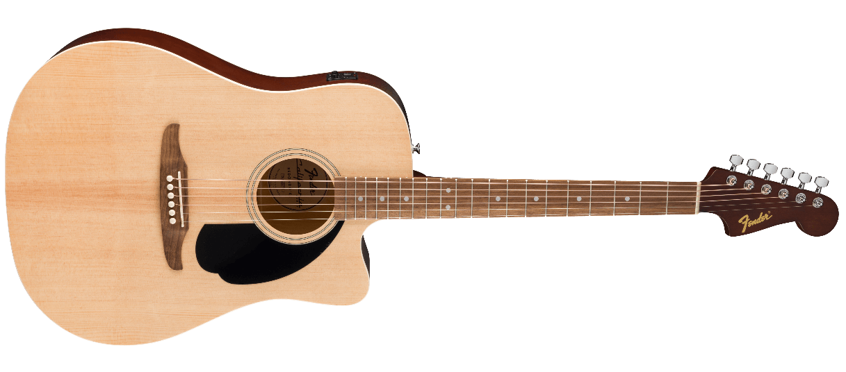 La California Debut Redondo CE presenta una construcción laminada resistente con tapa de abeto y fondo y aros de sapeli para un sonido satisfactorio, mientras que un mástil de escala de 25 ½» con un perfil delgado en forma de «C» proporciona una sensación de ejecución fluida. La electrónica Fender integrada proporciona una salida de alta calidad para amplificación en vivo, grabación y efectos, además de un práctico afinador digital integrado. Otros detalles notables incluyen un diapasón y puente de nogal aceitado, clavijeros de engranajes sellados para una afinación suave y precisa, y un acabado satinado de alta calidad.