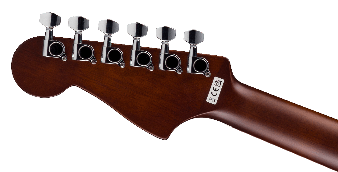Una característica de diseño Fender fácilmente reconocible, el clavijero de 6 en línea crea una tracción de cuerdas recta desde la cejuela para un rendimiento óptimo del clavijero y coloca todos los clavijeros en una ubicación lineal para facilitar el acceso. El diseño inclinado hacia atrás produce un ángulo de quiebre constante en todas las cuerdas para una respuesta y una sensación de cuerdas uniformes.